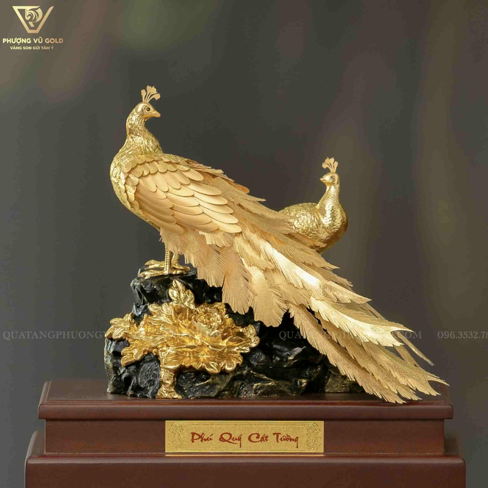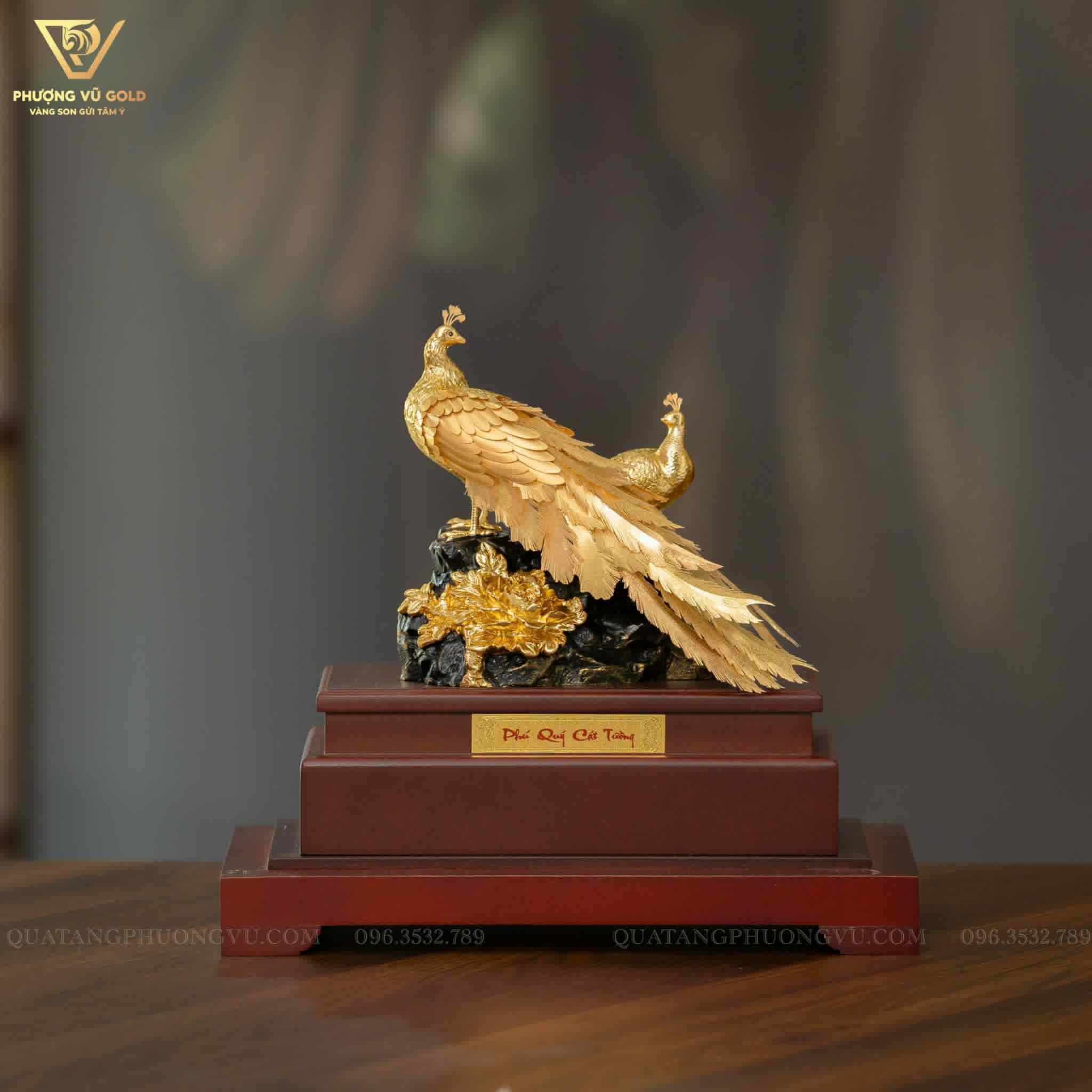 Chim Công Hoa Mẫu Đơn Dát Vàng 24K – Quà Tặng Phú Quý, Sang Trọng | Phượng Vũ Gold