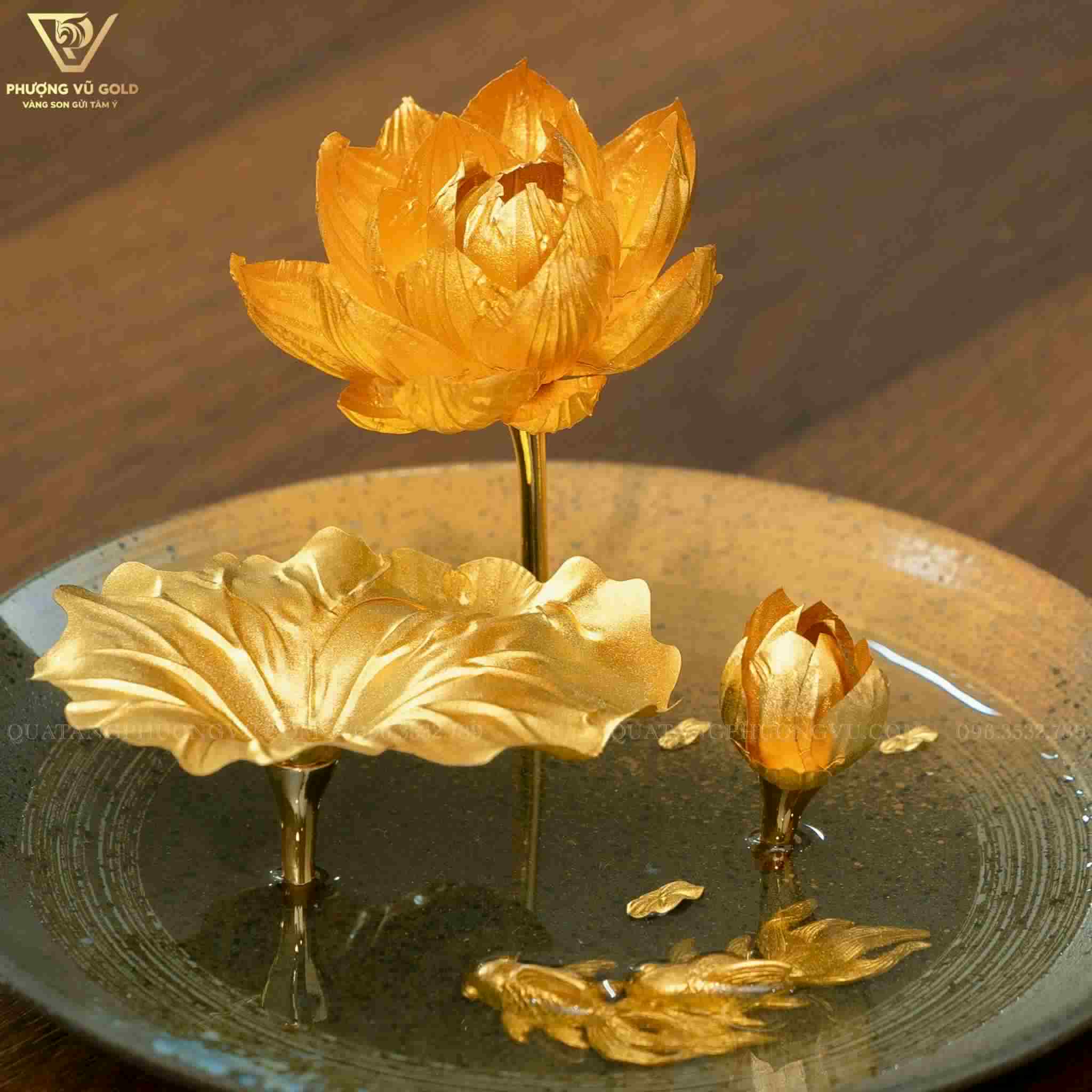 Đĩa Hoa Sen Mạ Vàng 24K – Quà Tặng Để Bàn Sang Trọng | Phượng Vũ Gold