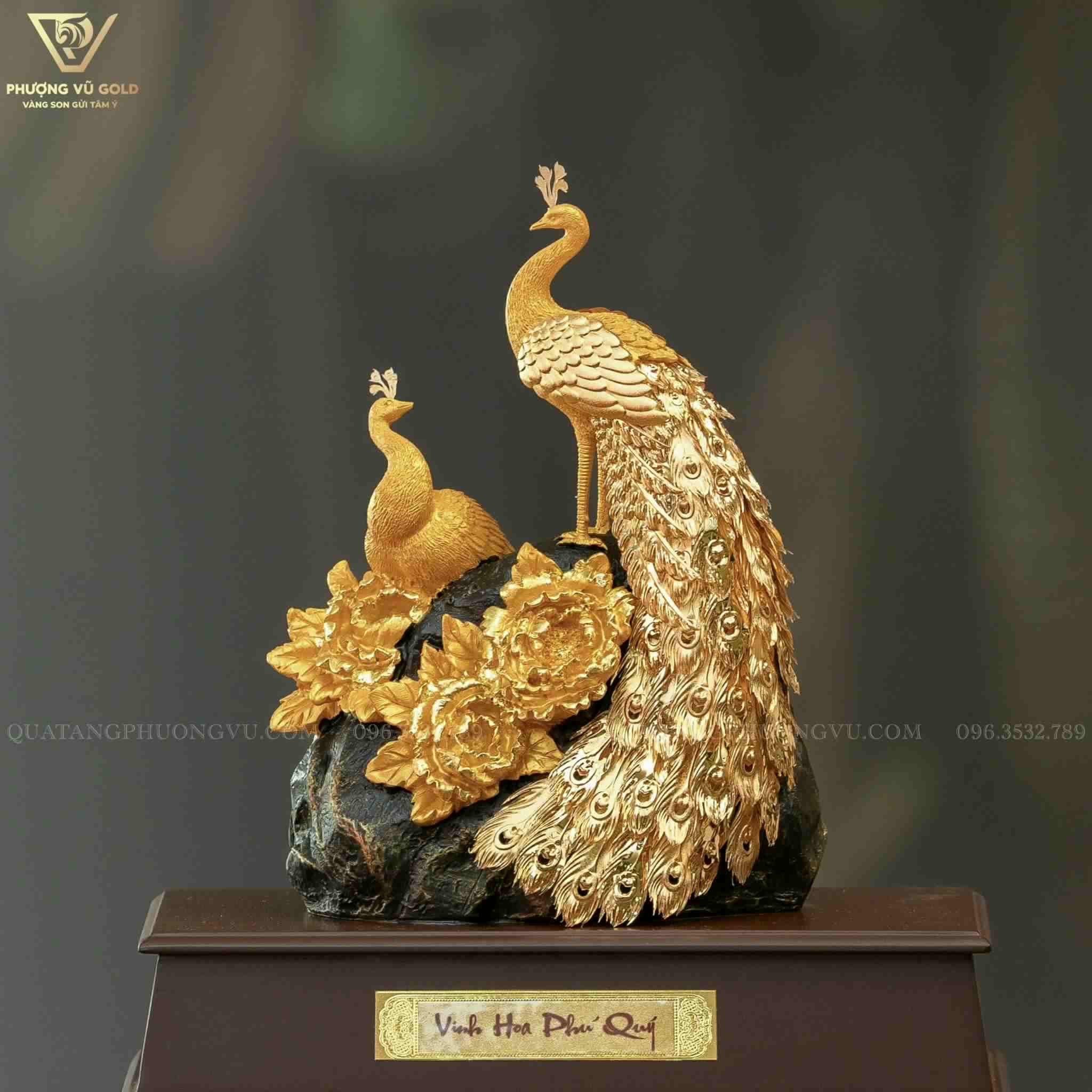 Mô Hình Chim Công Hoa Mẫu Đơn Phú Quý Dát Vàng 24K – Quà Tặng Cao Cấp | Phượng Vũ Gold