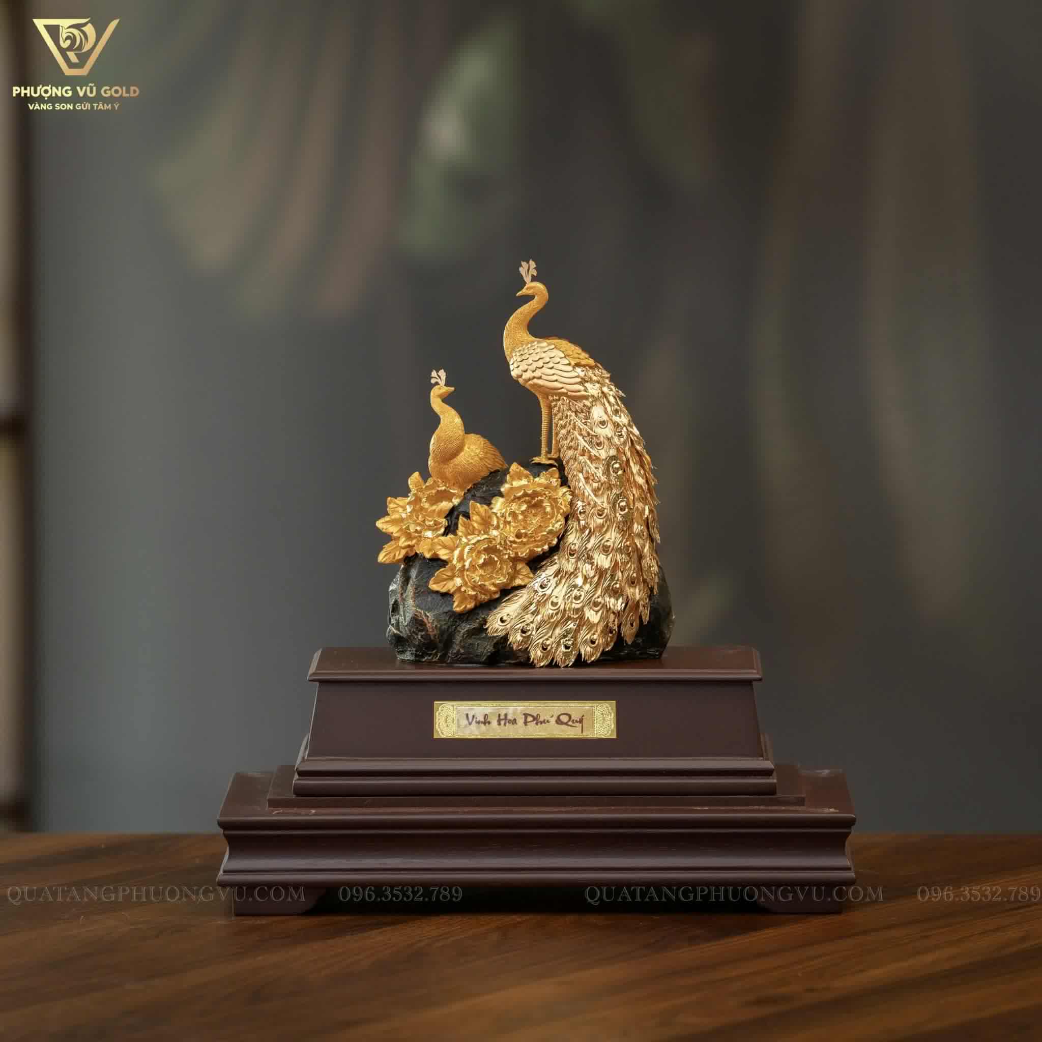 Mô hình chim công hoa mẫu đơn phú quý dát vàng 24K không đơn thuần là vật phẩm trang trí mà còn là lời chúc phú quý – trường tồn – thịnh vượng, rất phù hợp làm: