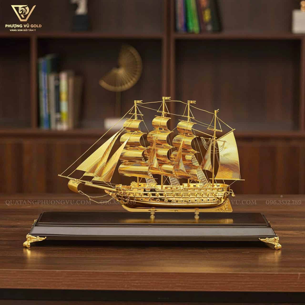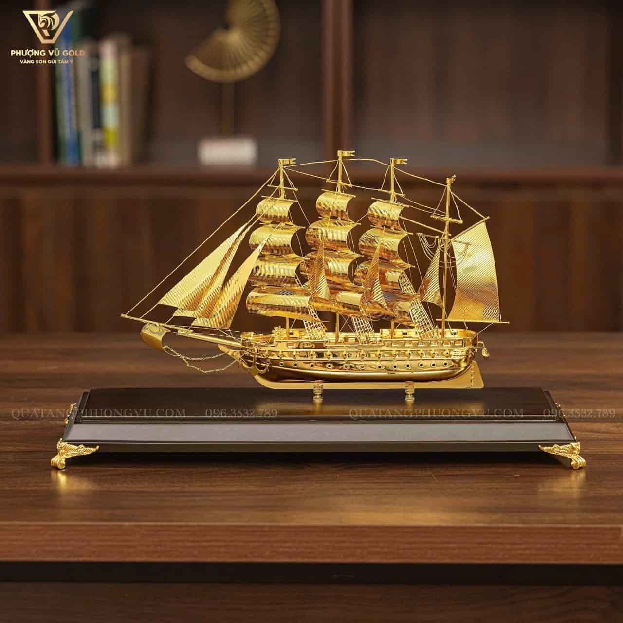 Mô Hình Thuyền Vàng 24K Quà Tặng Sếp Nam Cao Cấp | Phượng Vũ Gold