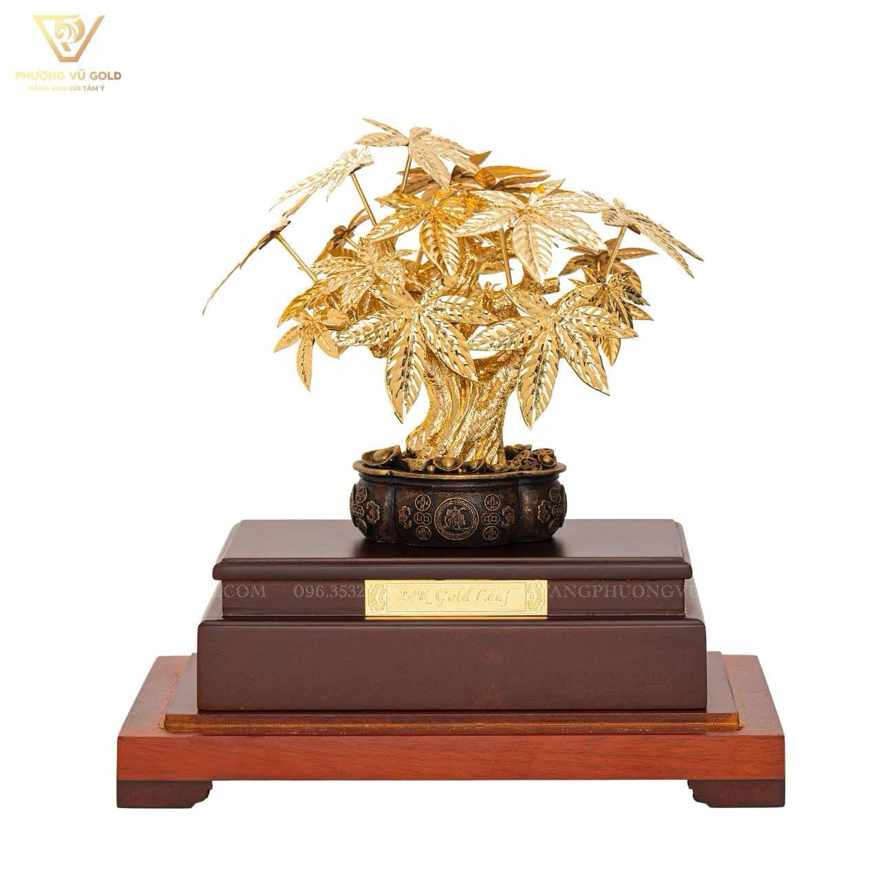 Sản phẩm được hoàn thiện với lớp vàng 24K sáng bóng, đường nét tinh xảo và bố cục cân đối.