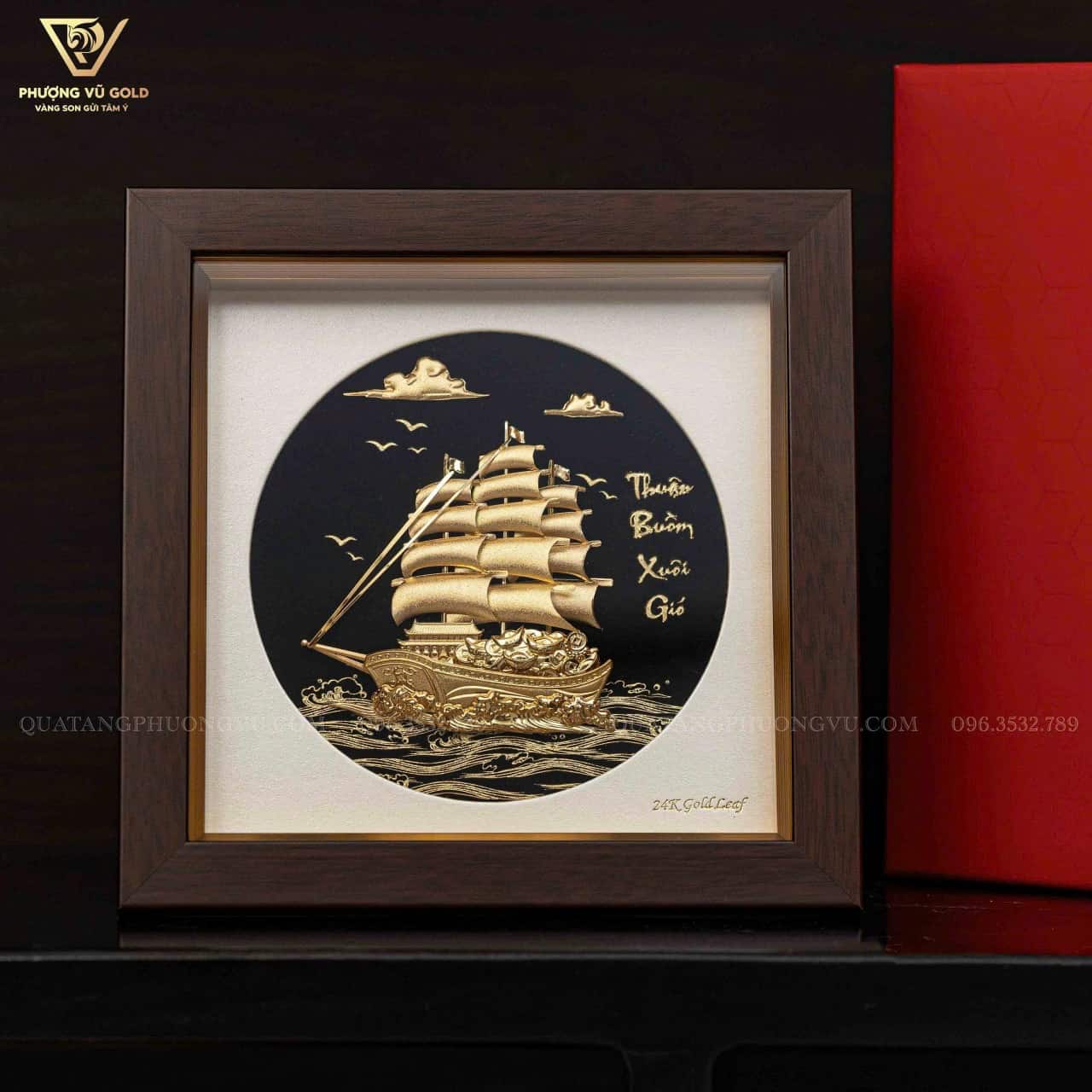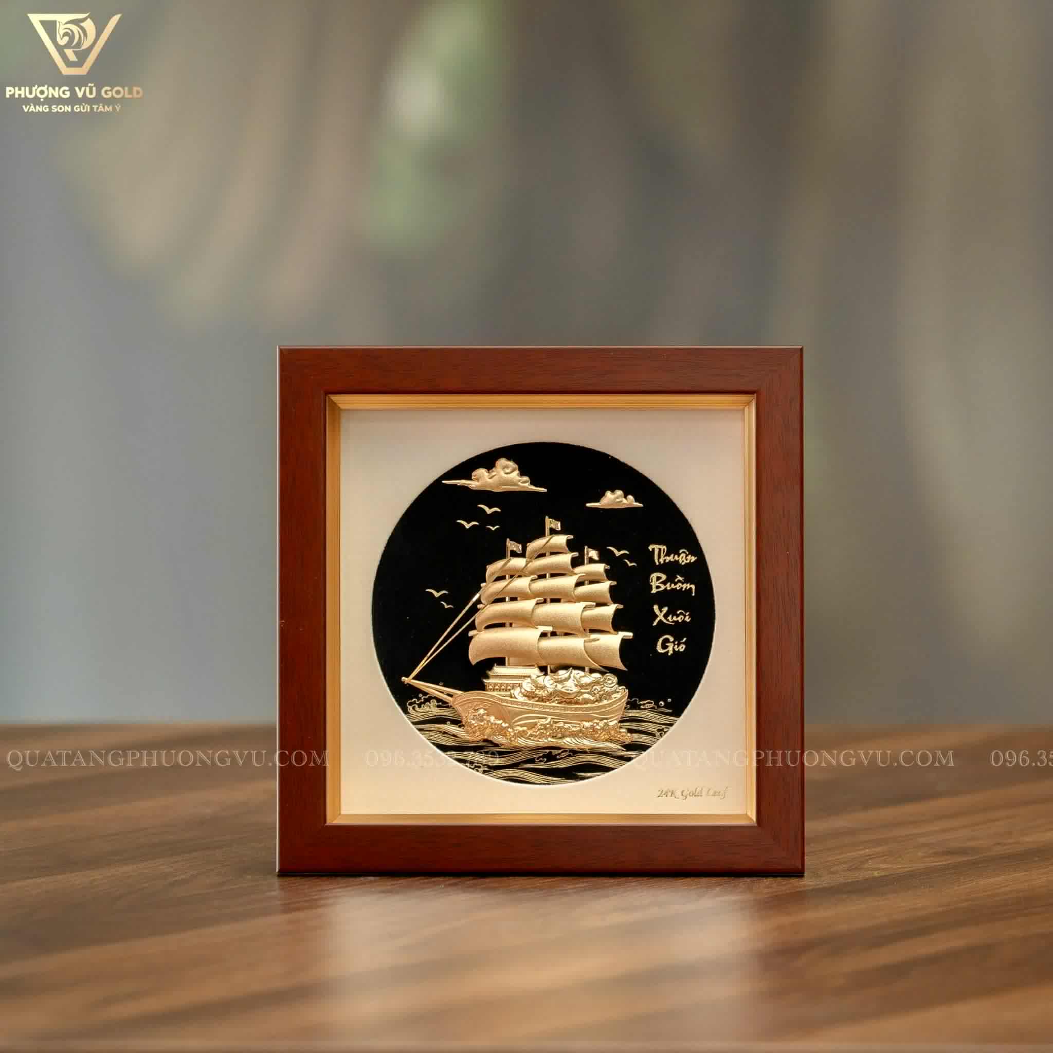 Tranh Thuyền Dát Vàng 24K – Quà Tặng Phong Thuỷ Để Bàn | Phượng Vũ Gold