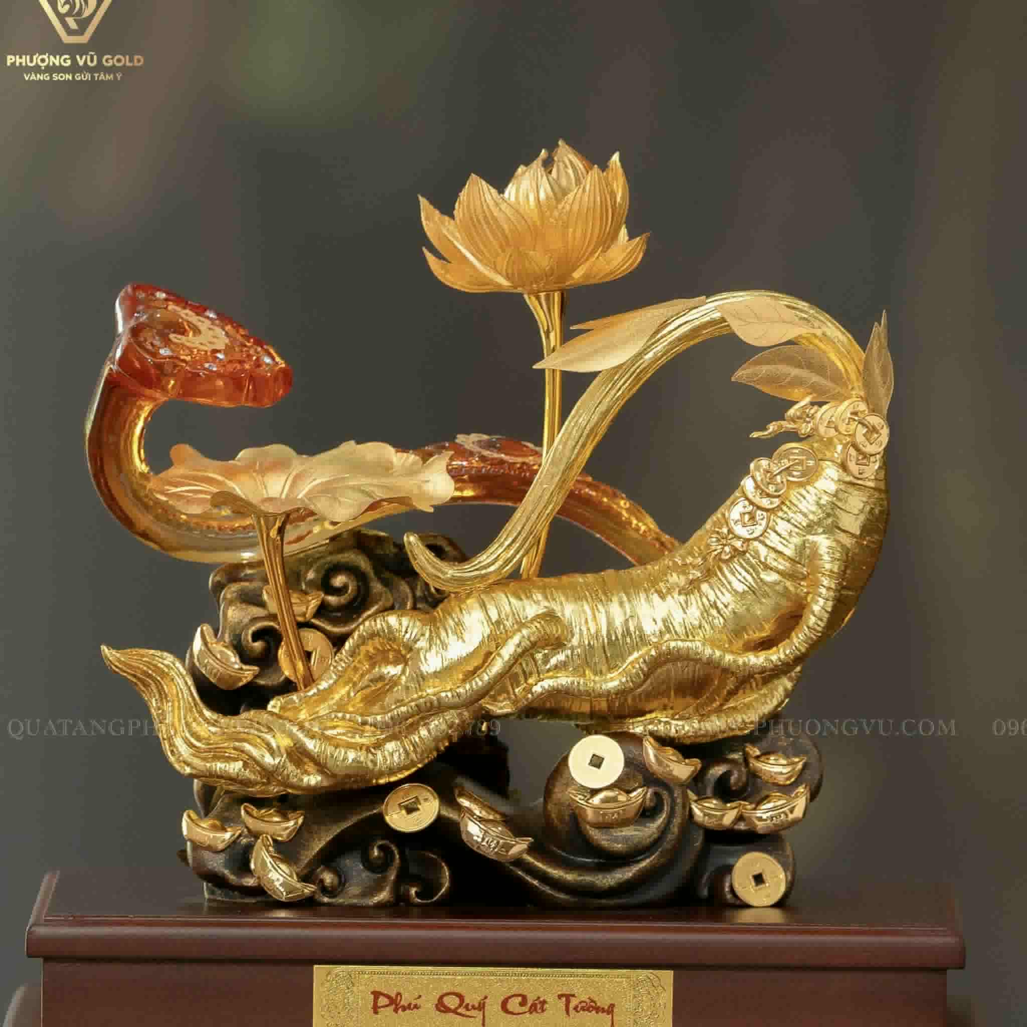Sâm Ngọc Linh Sen Như Ý Mạ Vàng 24K – Quà Tặng Sang Trọng | Phượng Vũ Gold