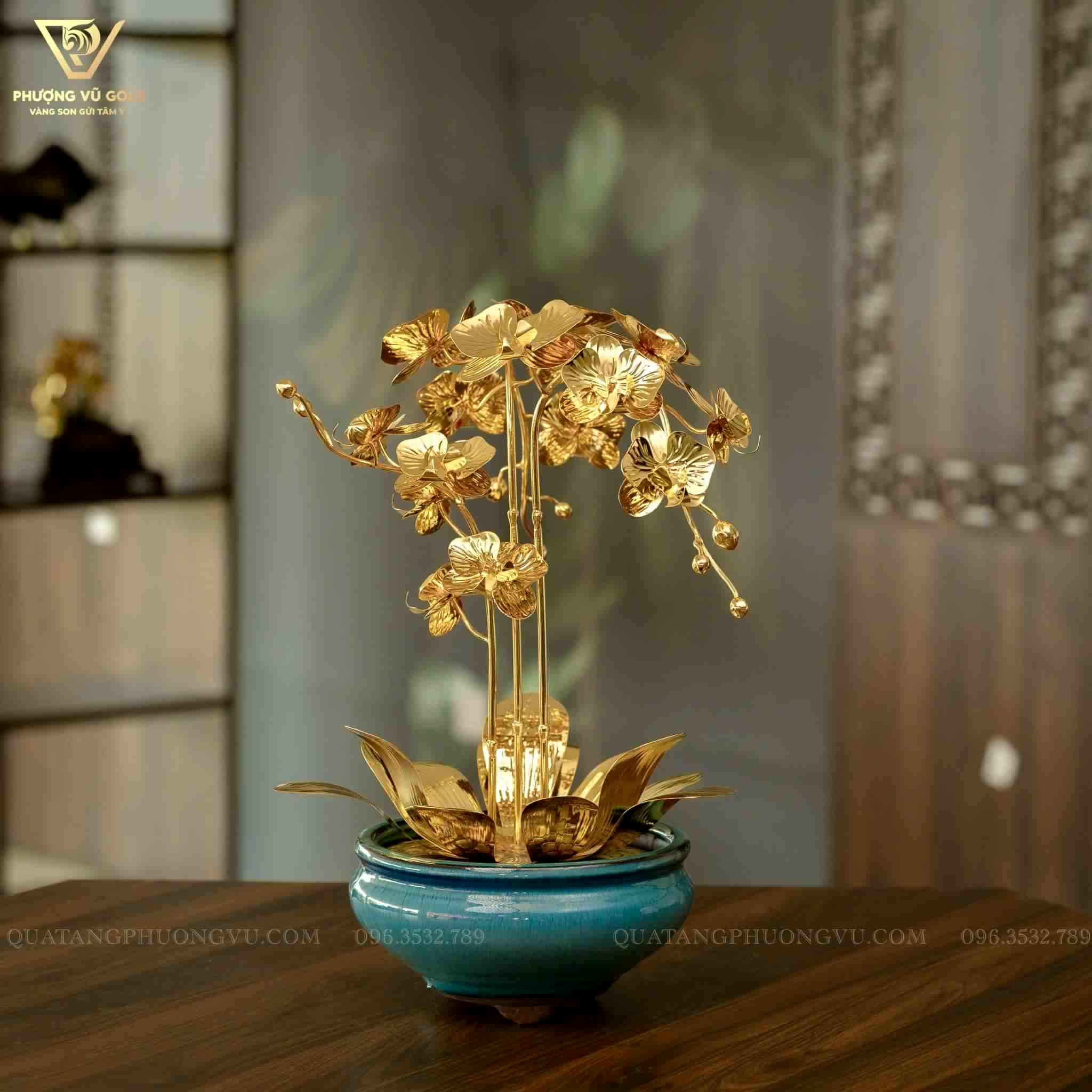 Chậu Hoa Lan Bằng Đồng Mạ Vàng 24K – Quà Tặng Phong Thủy Cao Cấp | Phượng Vũ Gold