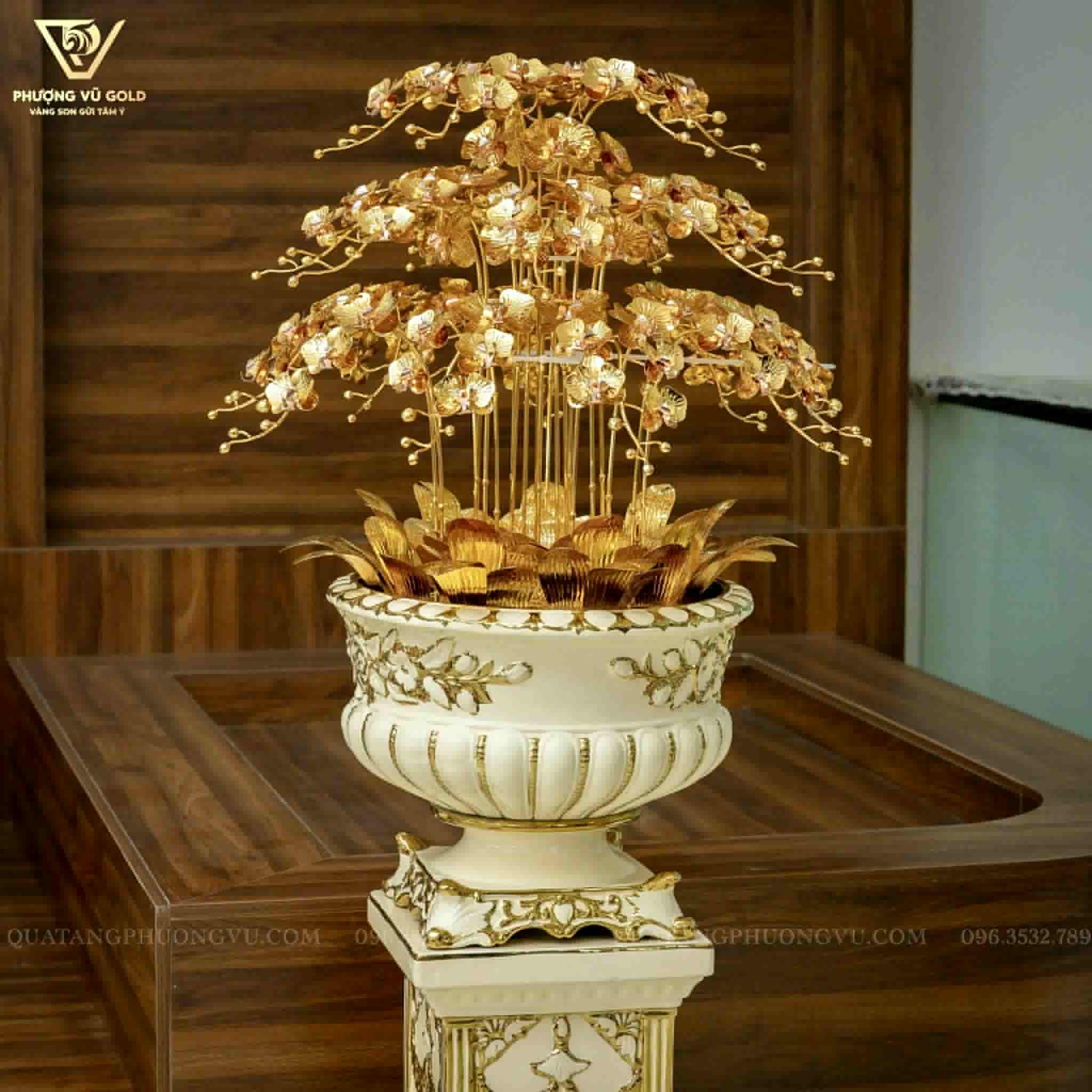 Chậu Hoa Lan Siêu VIP Dát Vàng 24K – Biểu Tượng Thành Công & Vinh Hoa | Phượng Vũ Gold