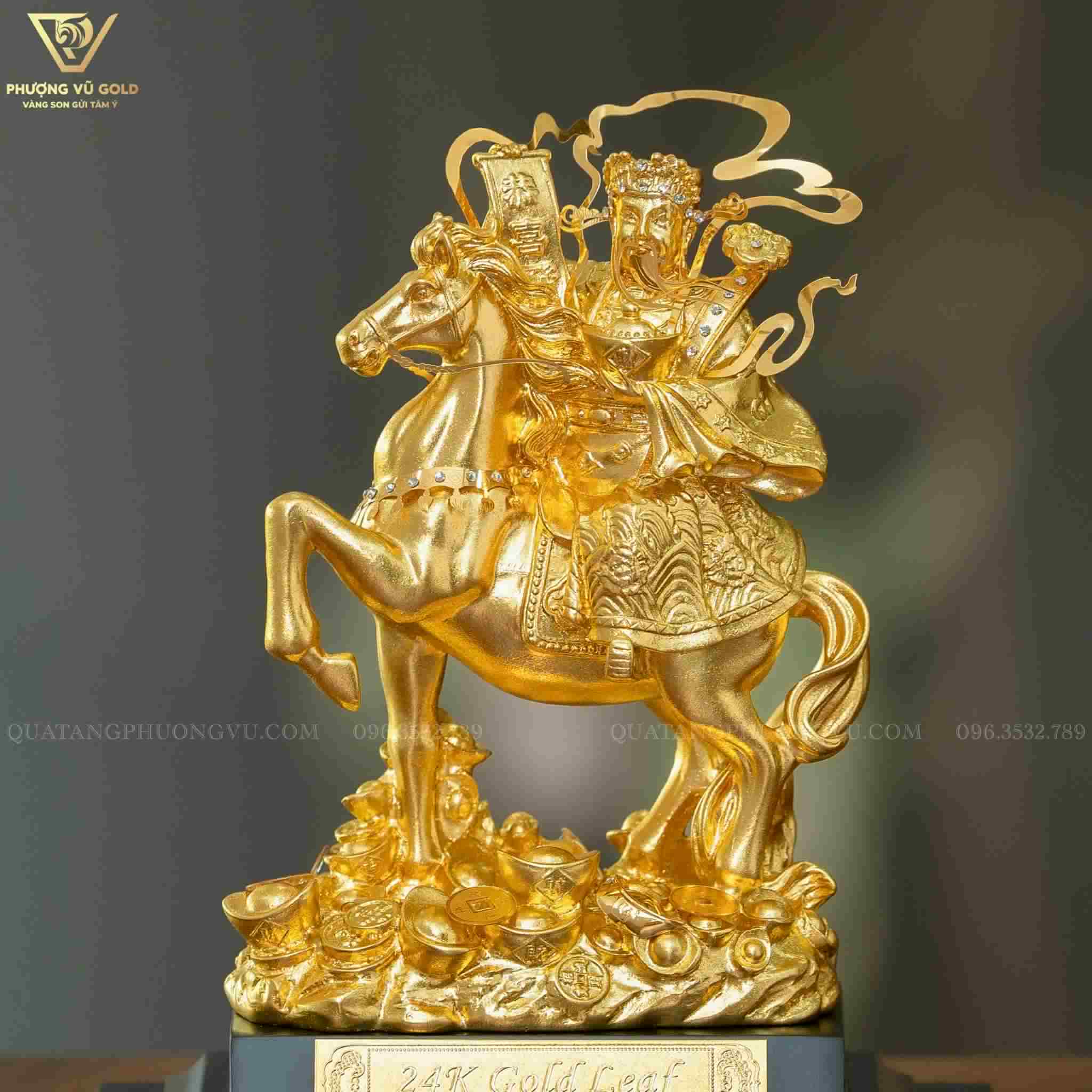 Hình tượng Thần Tài oai nghi cưỡi trên lưng ngựa vàng, tay cầm thỏi vàng hoặc túi tài lộc, là biểu trưng cho sự nghiệp hanh thông, công danh thăng tiến.