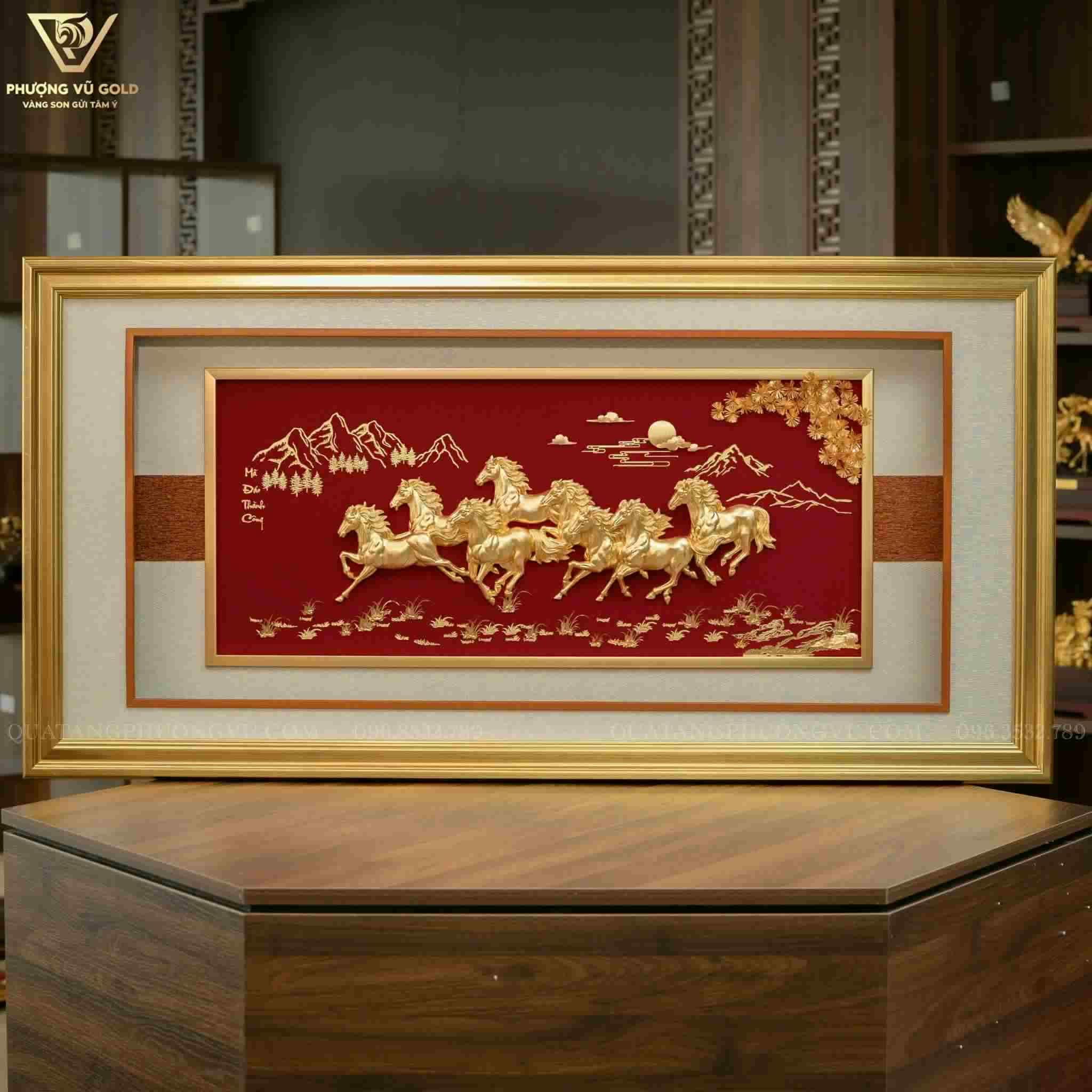 Tranh Bát Mã Mạ Vàng 24K – Quà Tặng Sếp Nam Cao Cấp | Phượng Vũ Gold