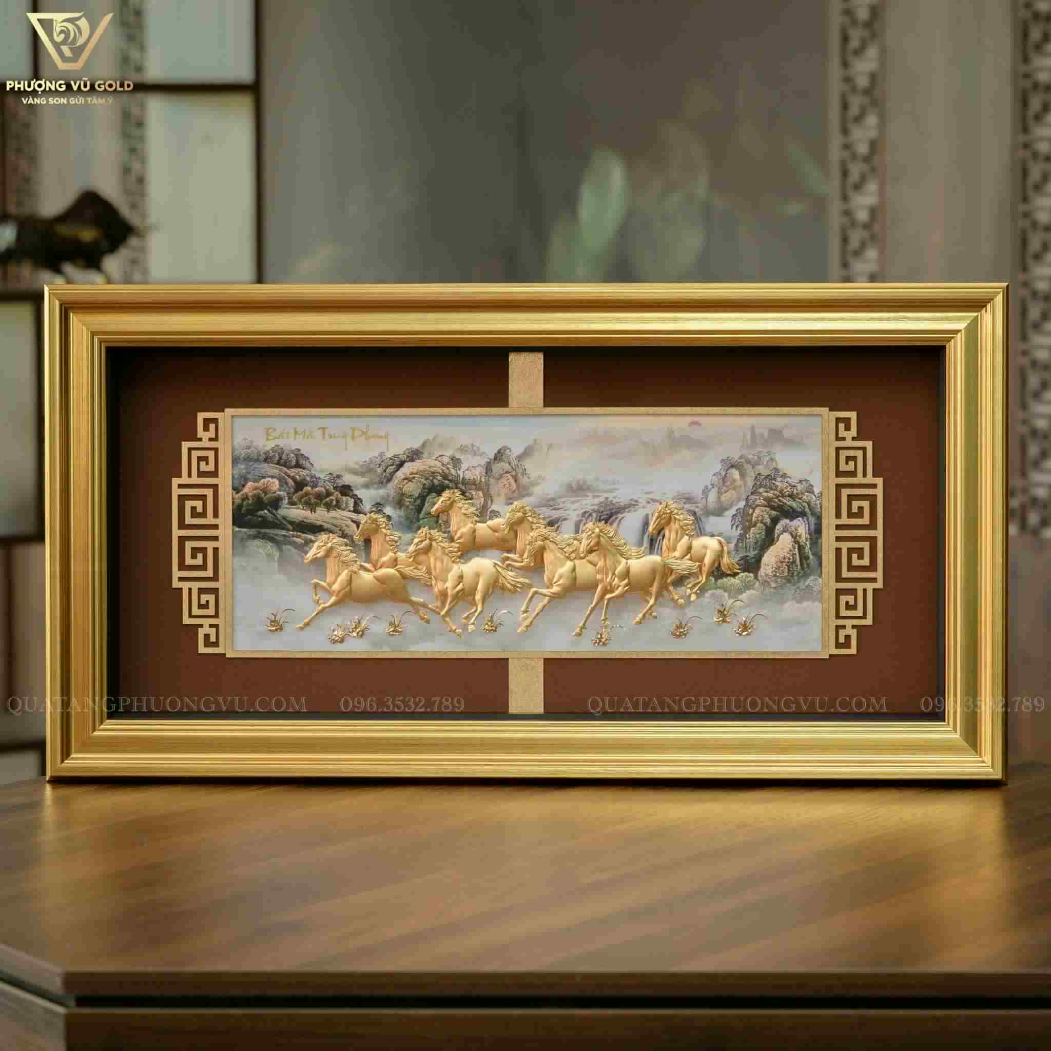 Tranh Bát Mã Truy Phong Dát Vàng 24K – Quà Tặng Thành Lập Công Ty | Phượng Vũ Gold