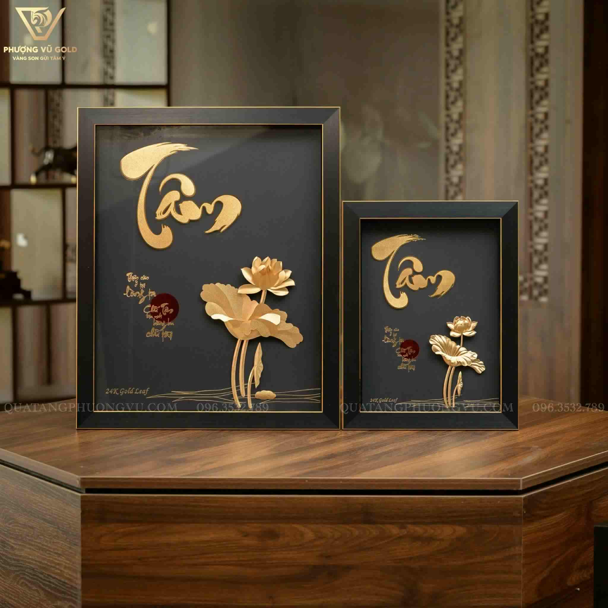 Tranh Chữ Tâm Cỡ Lớn 55cm Dát Vàng 24K – Quà Tặng Tri Ân Nghỉ Hưu | Phượng Vũ Gold
