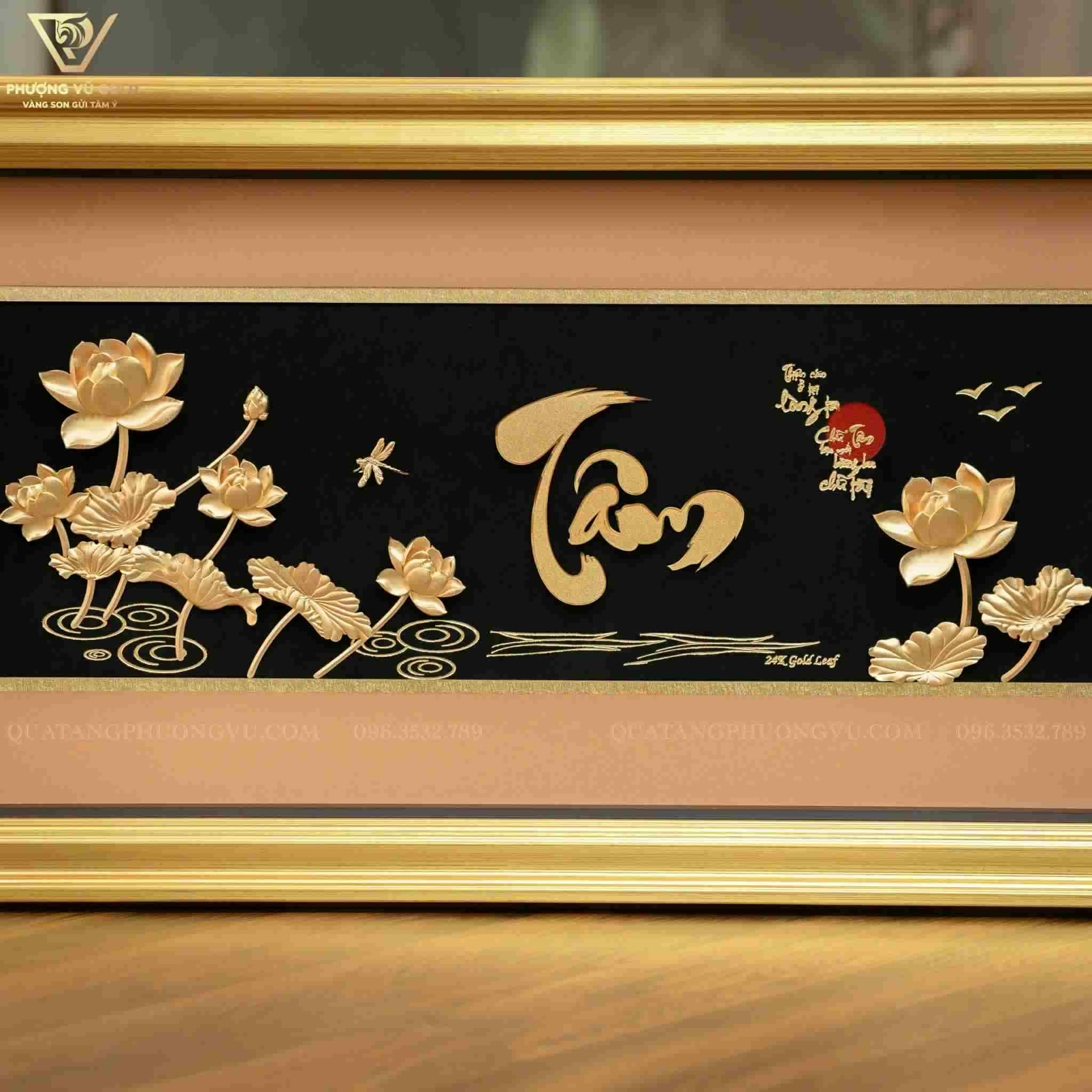 Tranh Chữ Tâm Dát Vàng 24K – Quà Tặng Phong Thủy | Phượng Vũ Gold