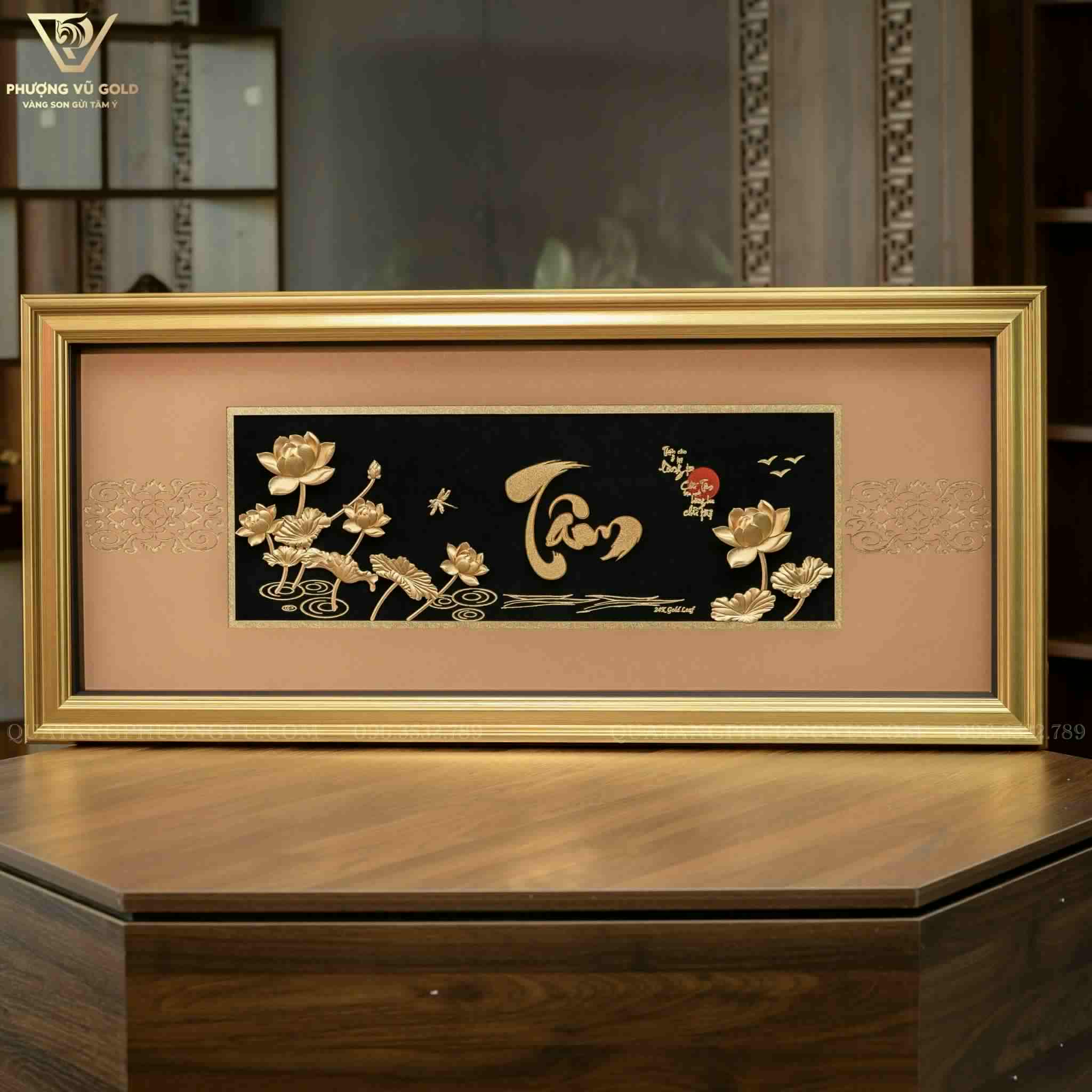 Cách Bày Trí Tranh Chữ Tâm Dát Vàng 24K