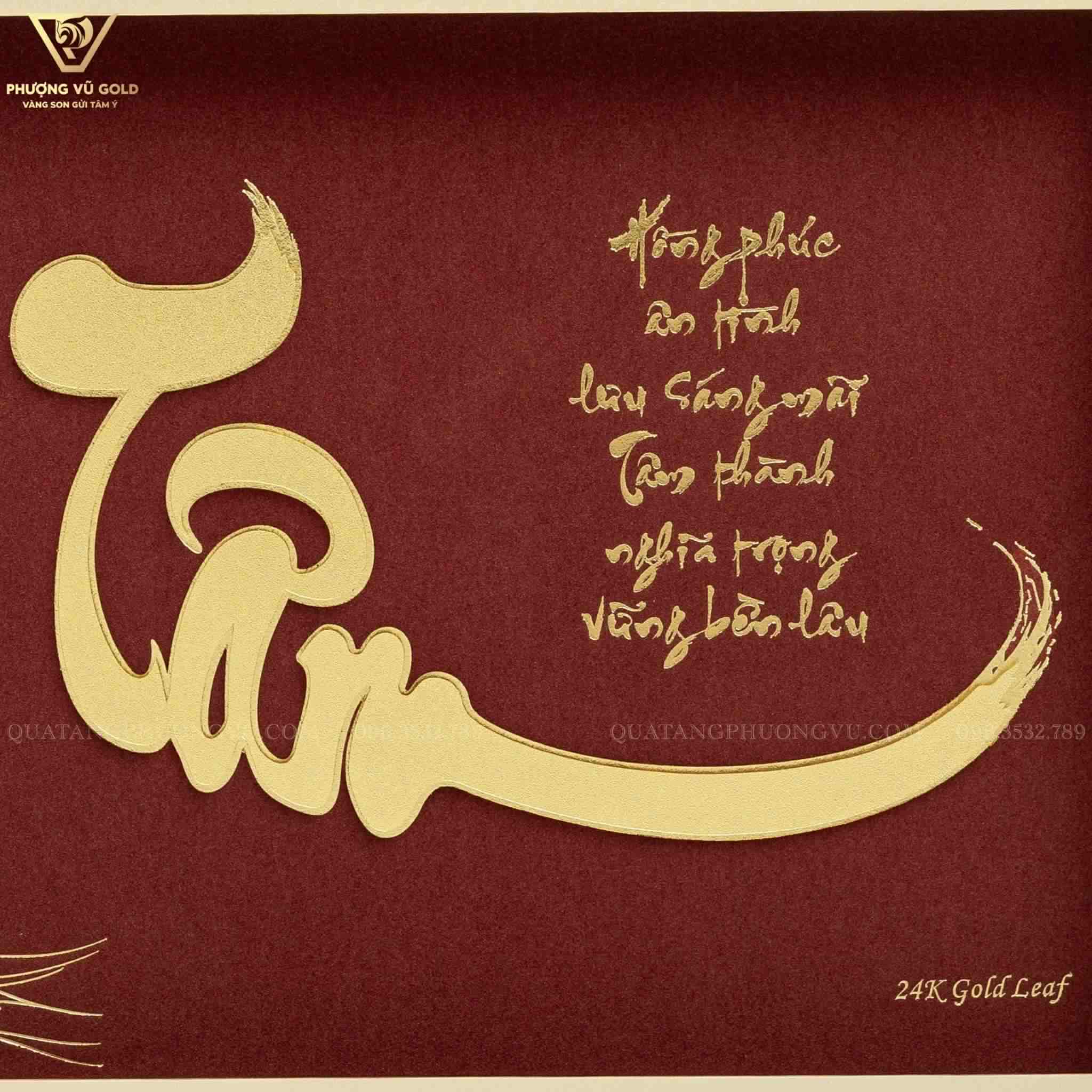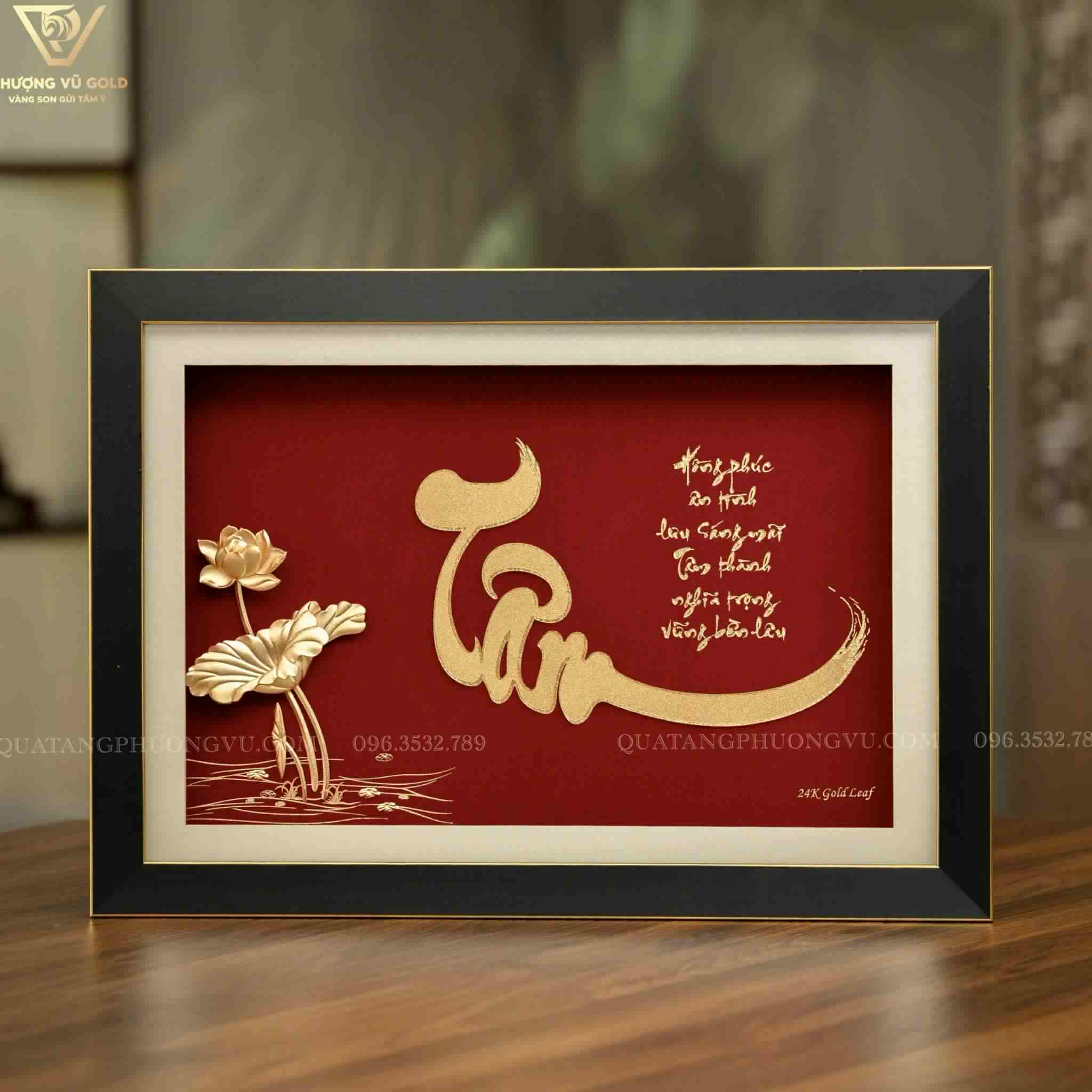 Tranh Chữ Tâm Dát Vàng 24K – Quà Tặng Sếp & Khách VIP | Phượng Vũ Gold