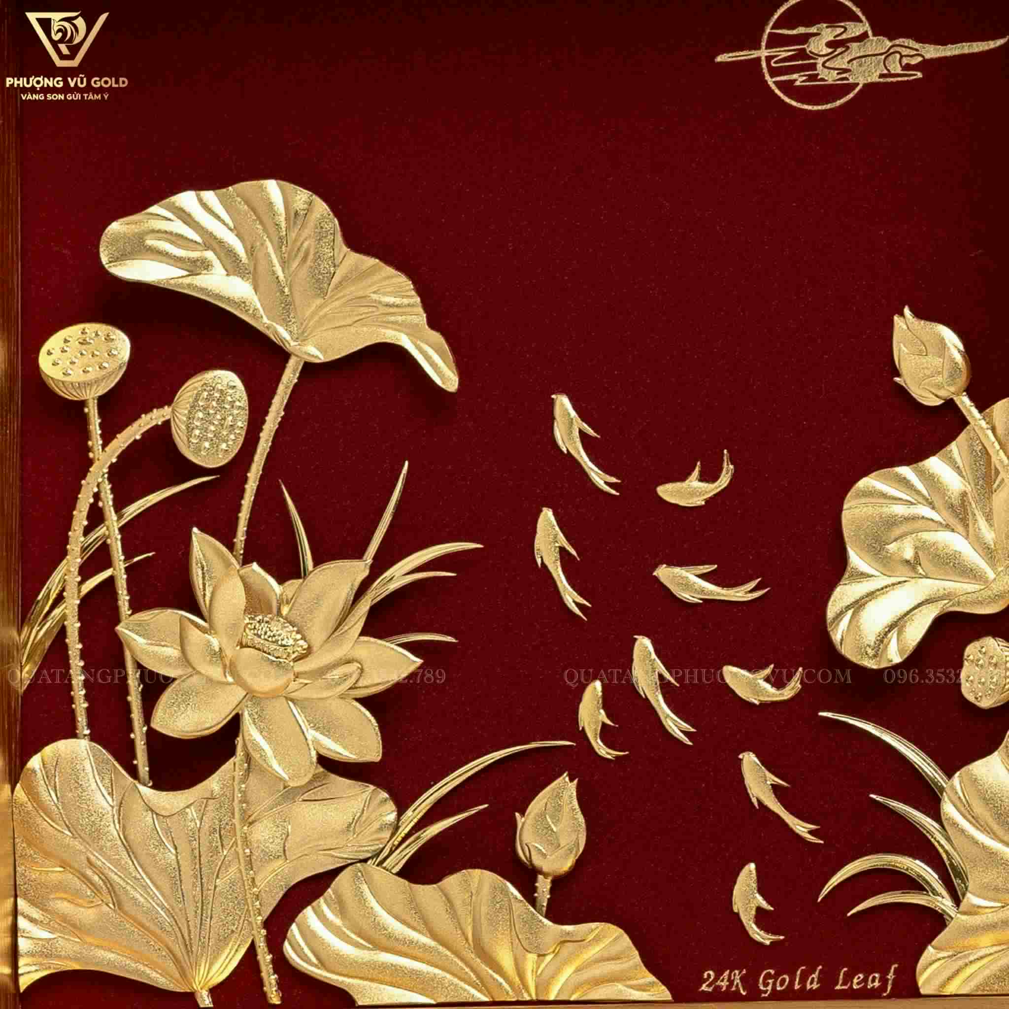 Từng chi tiết dát vàng ánh lên sự sang trọng, từng cánh sen tỏa ra vẻ thanh khiết – tất cả hòa quyện tạo nên một bức tranh hoàn hảo cho không gian sống và làm việc.