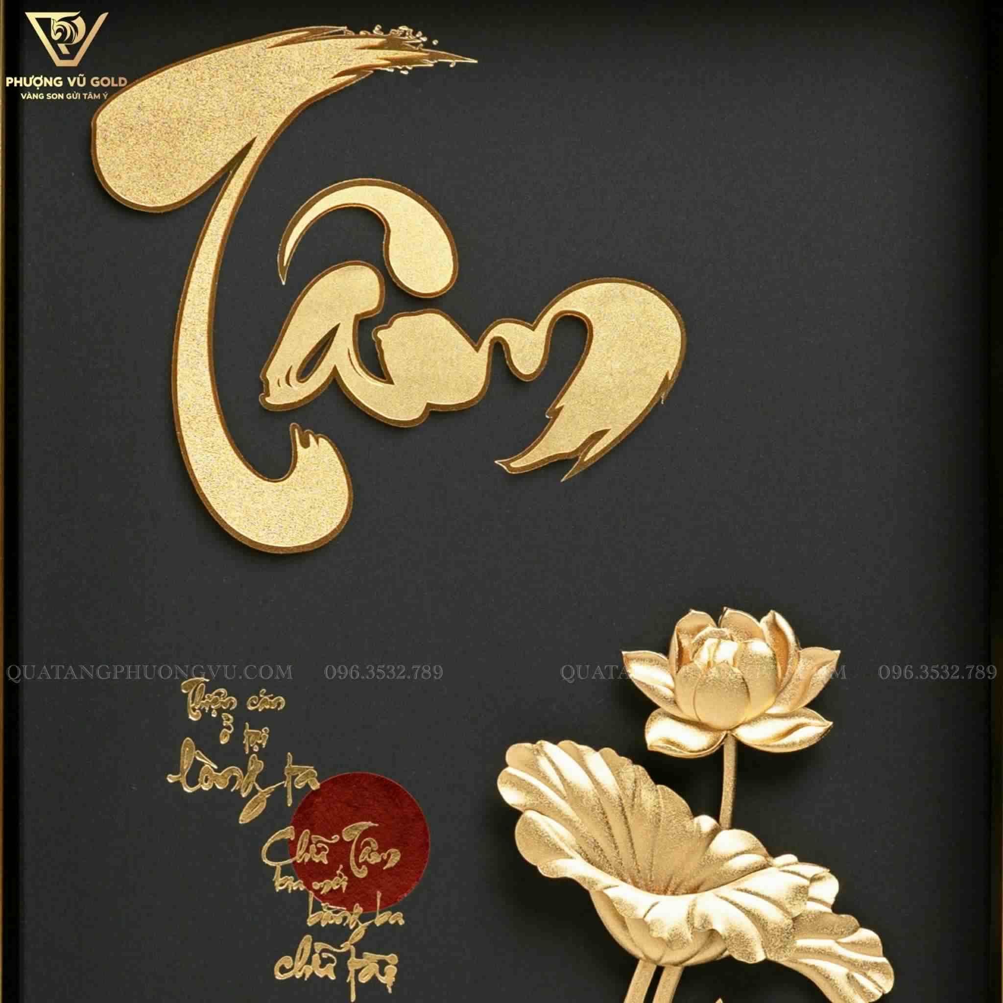 Tranh Thư Pháp Chữ Tâm Mạ Vàng 24K Cao Cấp | Phượng Vũ Gold