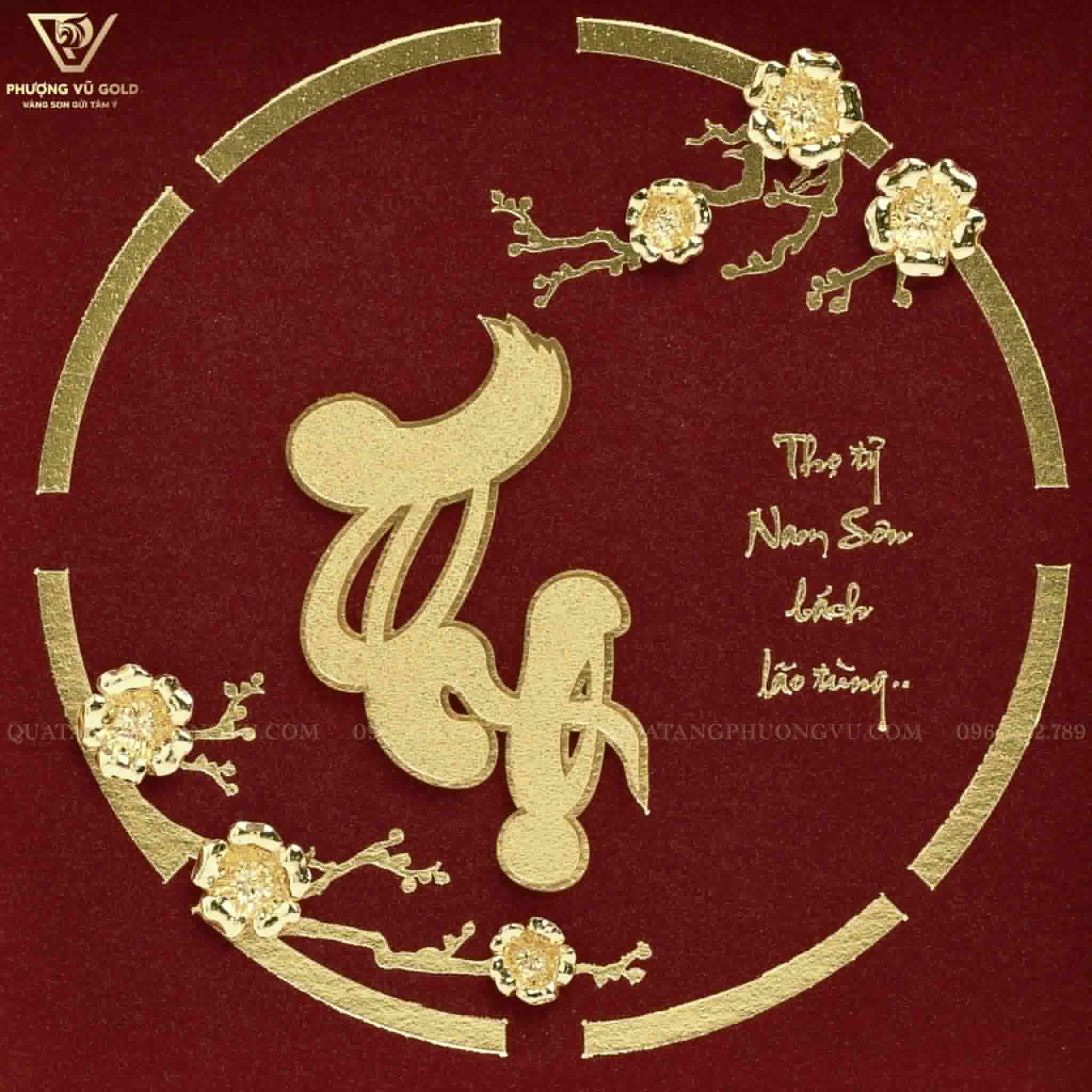 • Chữ “Thọ” dát vàng 24K, nổi bật với ánh kim sang trọng, bền màu theo thời gian.