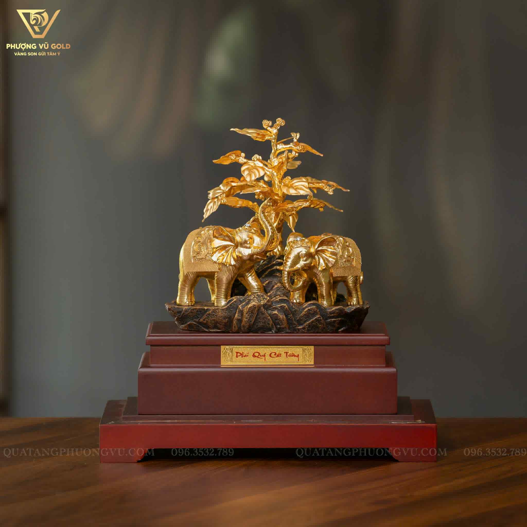 Khi được chế tác tinh xảo và dát lớp vàng 24K sang trọng, hình tượng Đôi Voi Phú Quý trở nên rực rỡ và quyền uy, tượng trưng cho tài lộc, may mắn và thịnh vượng bền lâu.