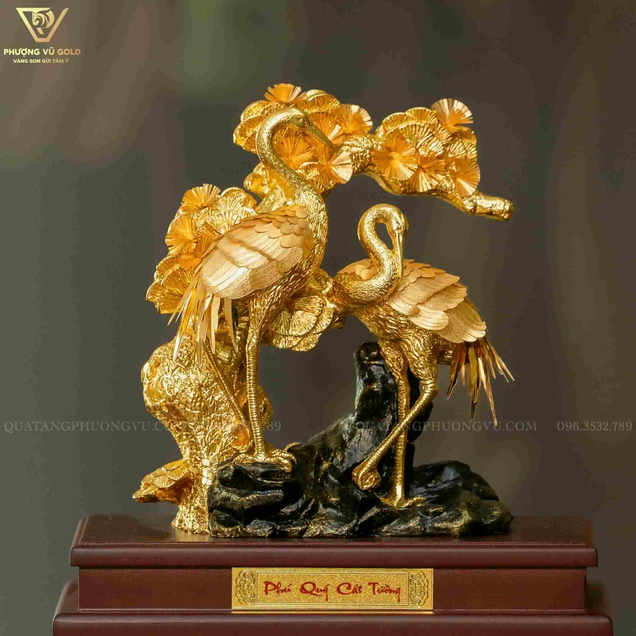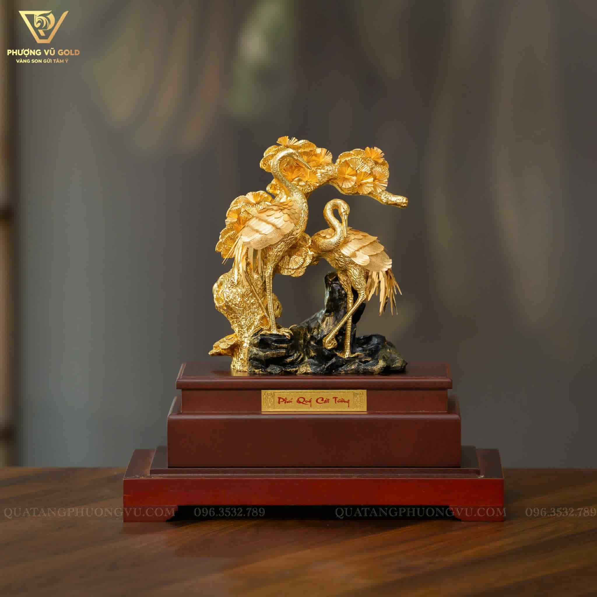 Sản phẩm được gia công thủ công tinh xảo, từng chi tiết cánh, cổ, và dáng hạc đều được mạ vàng tỉ mỉ, tạo nên vẻ đẹp thanh cao và bền vững theo thời gian.